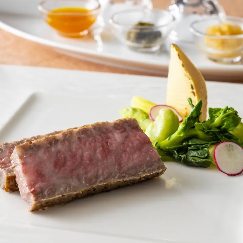 全組対象【絶品*和フレンチハーフコース】オニオンクリームスープ白トリュフの香り/国産牛鞍下肉のロースト 蕗味噌・卵黄醤油漬け・おろしポン酢をお好みで。世界の国賓をもてなす「本物のフレンチ」を体験!